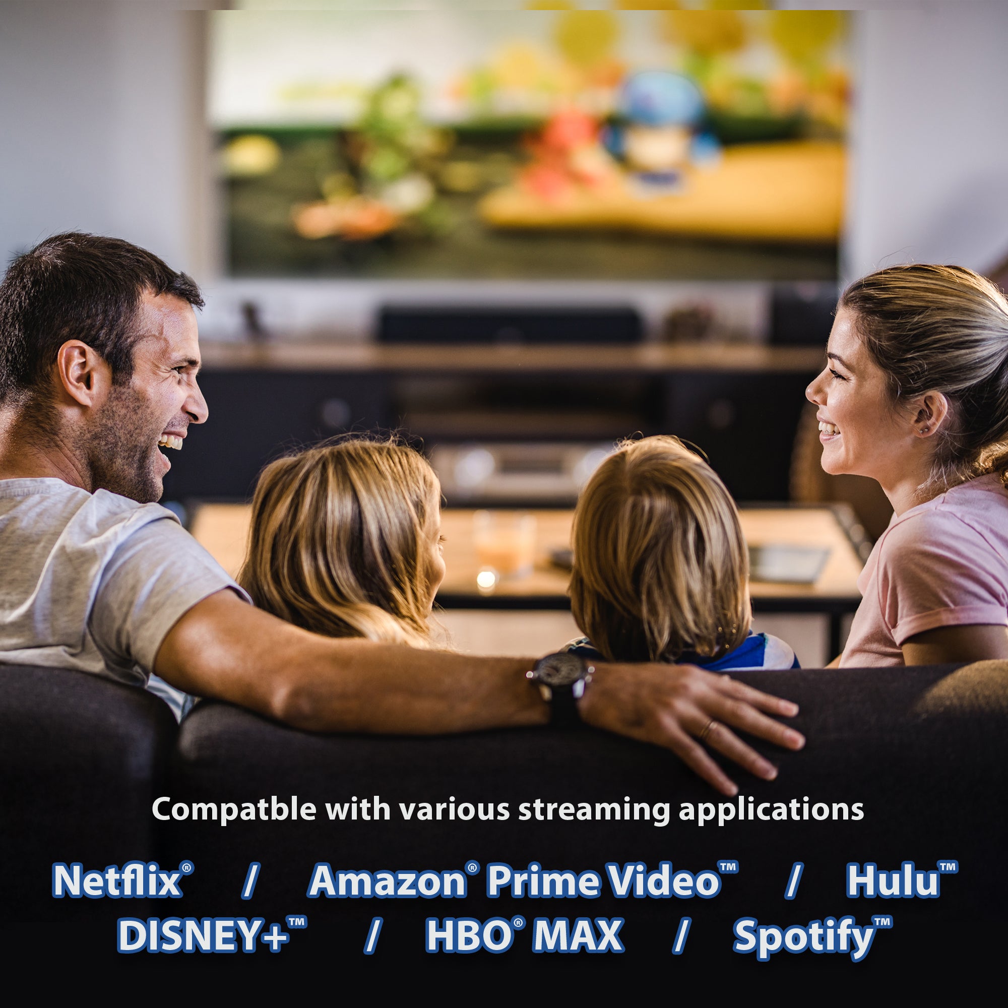 With the support of DRM technology and HDCP compliance, you can enjoy countless entertainment options on your favorite streaming applications.