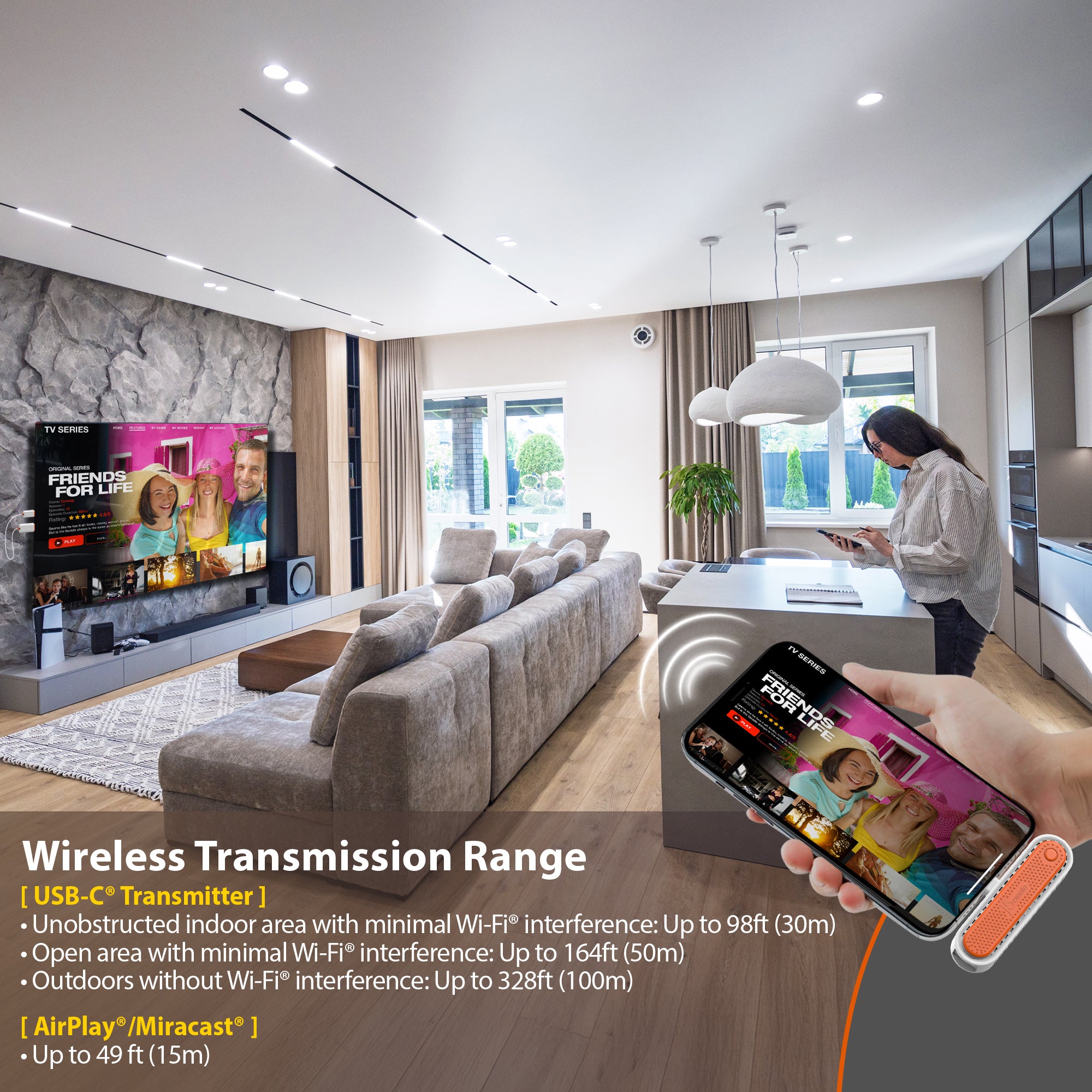 - USB-C® transmitter ready for iPhone® 15 series, Samsung® phones, and USB-C® iPad®.