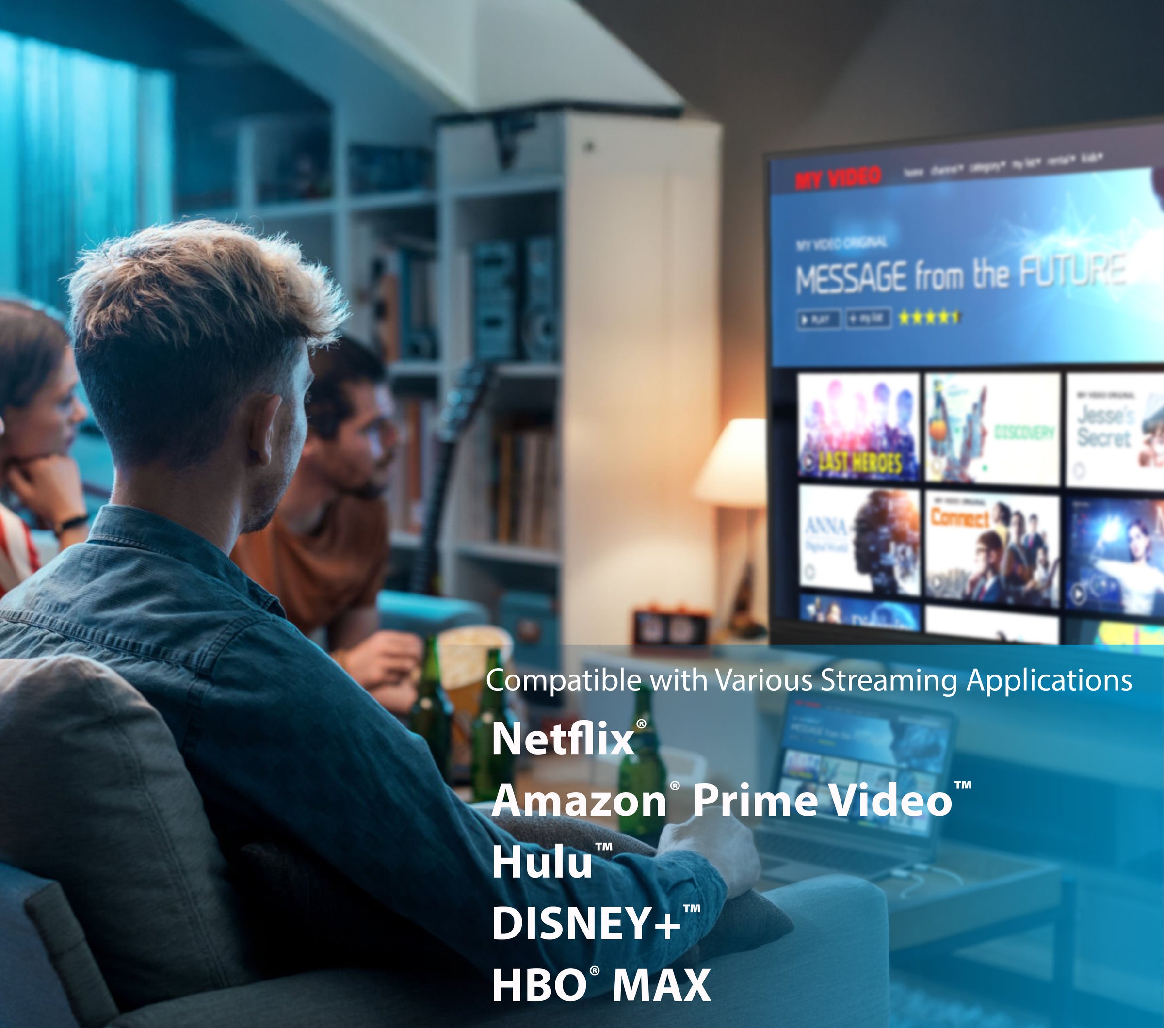 With the support of DRM technology and HDCP compliance, you can enjoy countless entertainment options on your favorite streaming applications. (DRM/HDCP compliance is only available for casting with the HDMI™ transmitter)