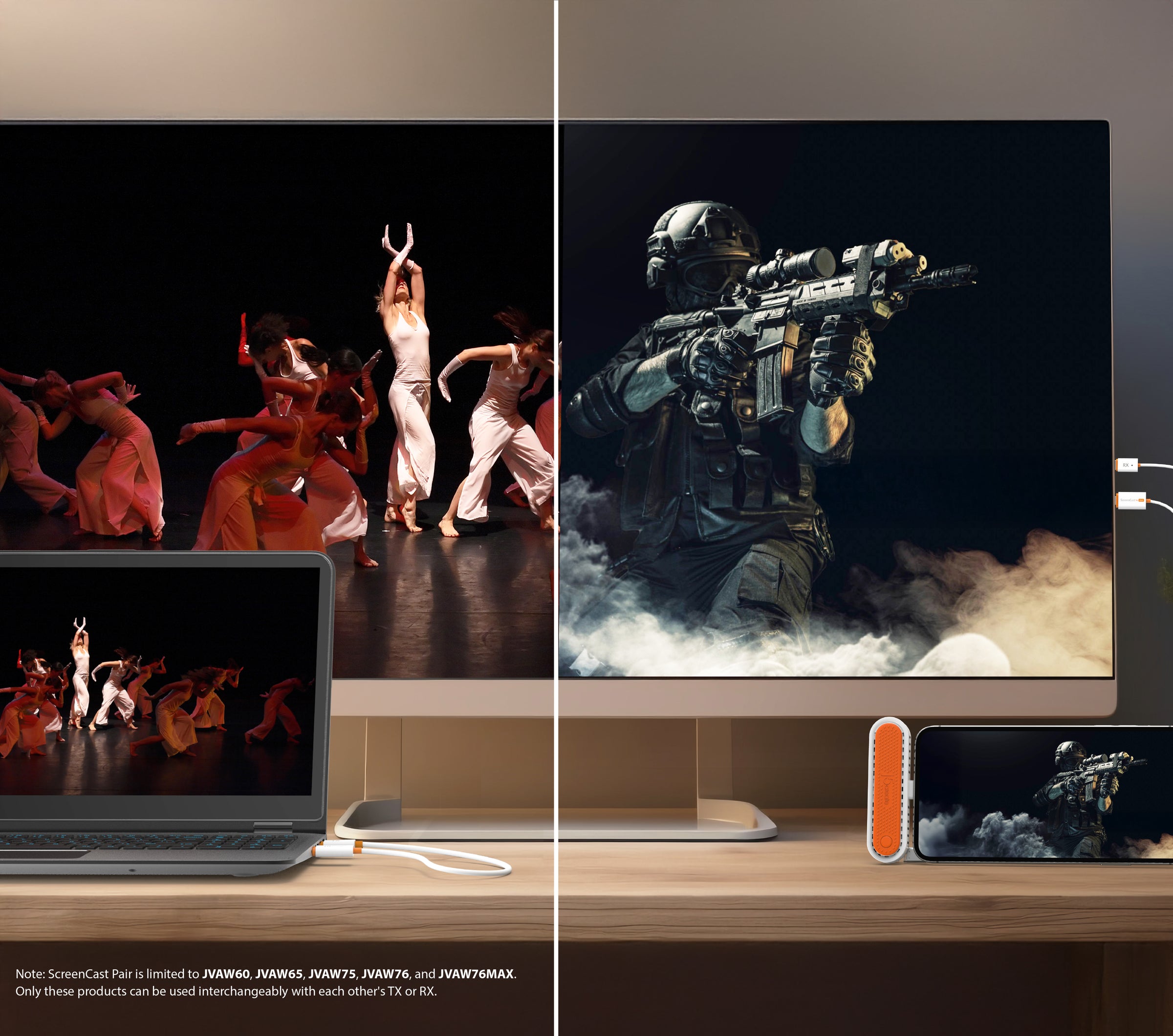 This device supports pairing with a TX or RX from other products in the JVAW series. Click the link below to learn more.