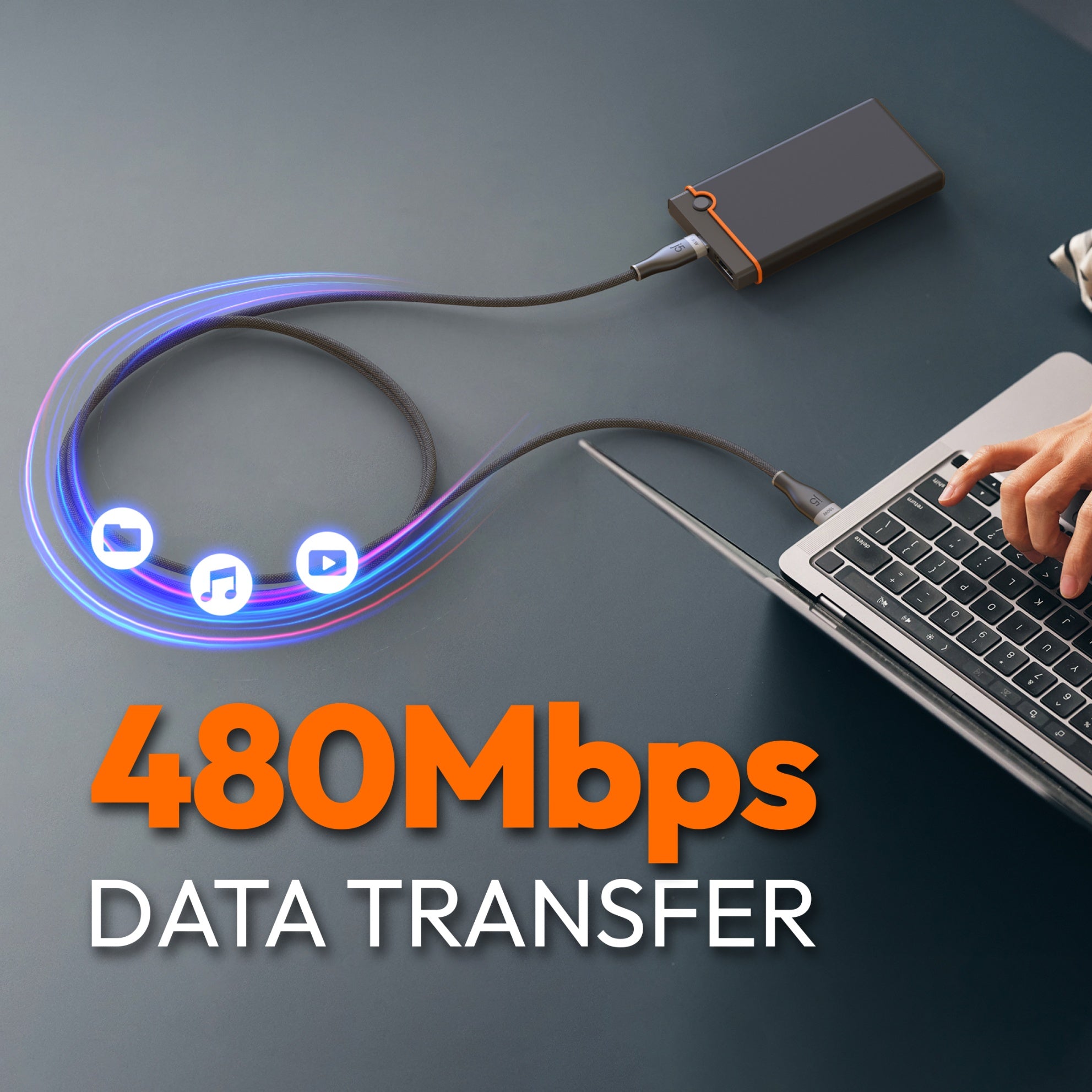 • Supports PD 100W fast charging and 480 Mbps data transfer speeds